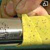 En el otro extremo doblaremos los bordes de la cinta hacia dentro del tubo del